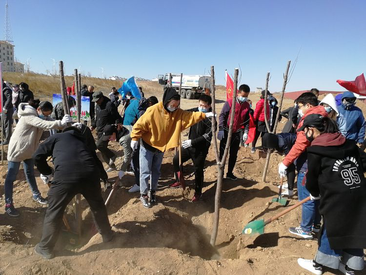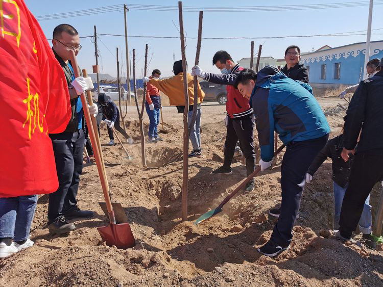 植树过程中,全体党员干部齐心协力、分工协作、干劲十足,大家一起挥锹铲土、挖坑植苗、扶正踩实,到处都是一片热火朝天的劳动景象。
